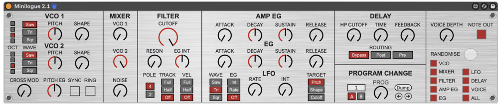 A Max For Live device for controlling a Korg Minilogue through Ableton Live.