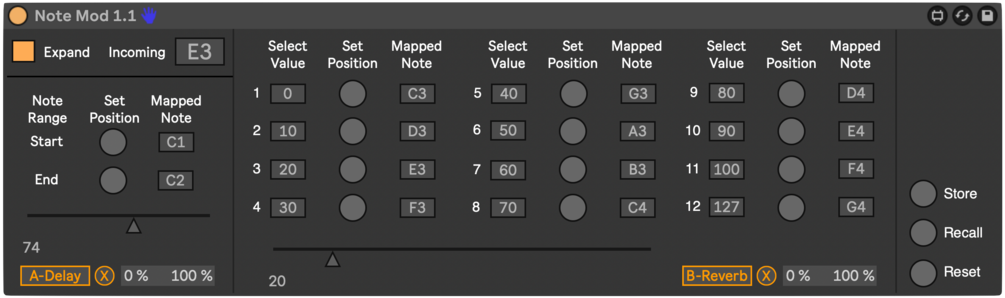 A device which allows you to map a chosen range of notes to any parameter in Live.
